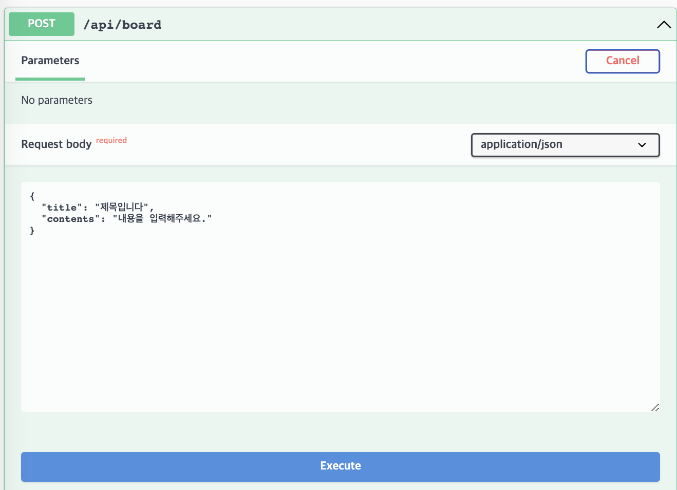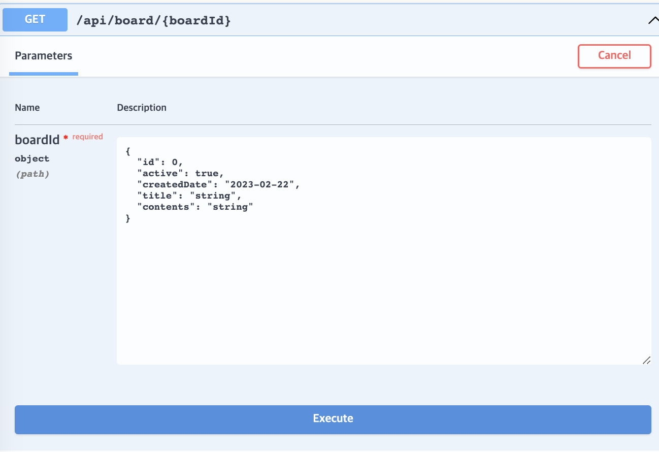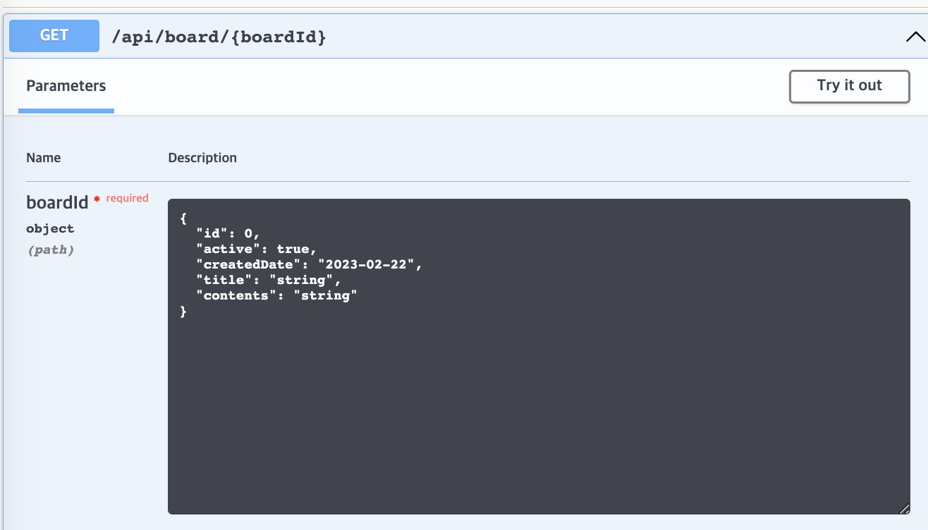 try it out을 누르면 해당 api를 테스트 할 수 있다.