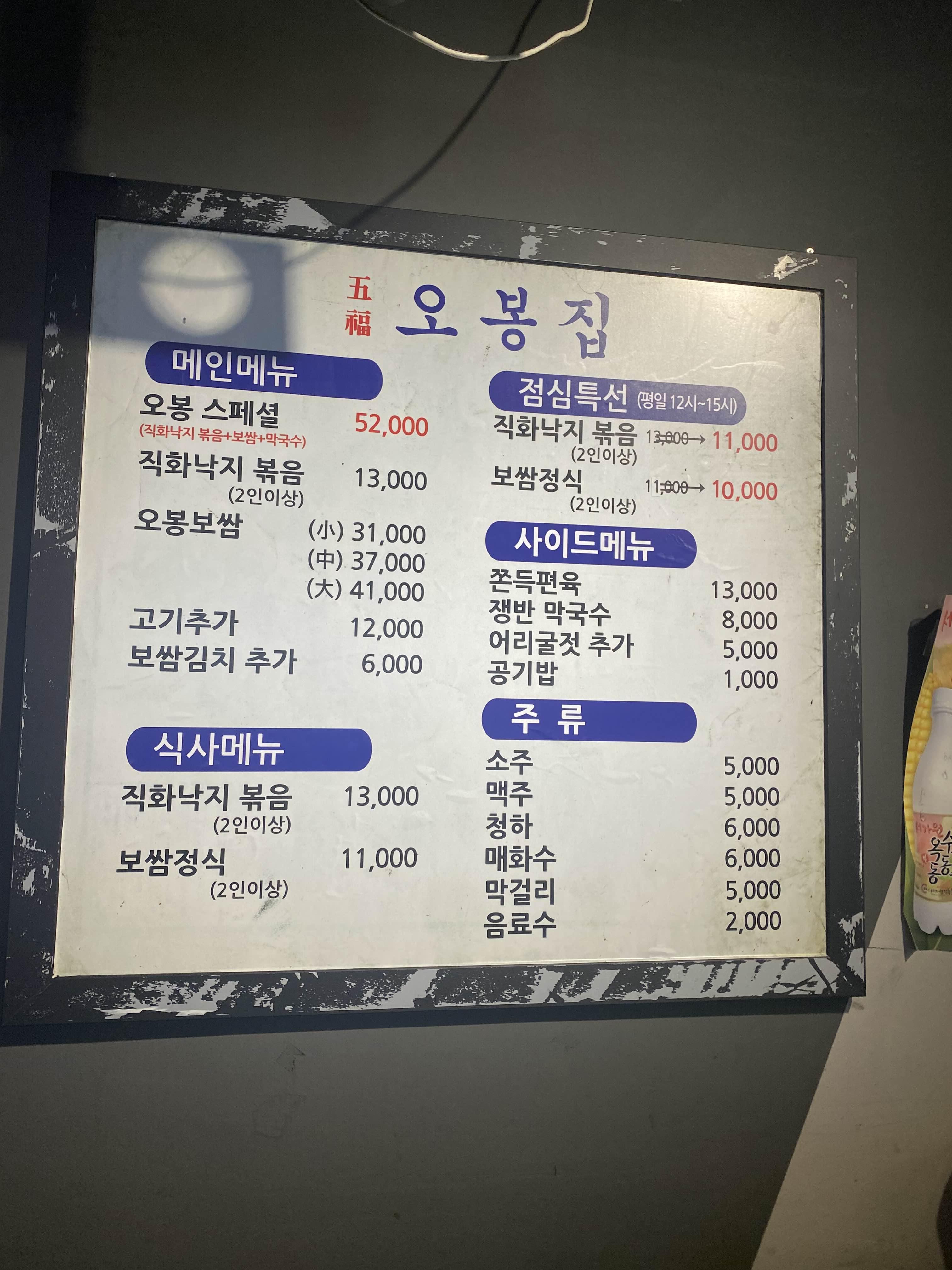 오늘은 낚지 볶음과 보쌈! 오봉집!