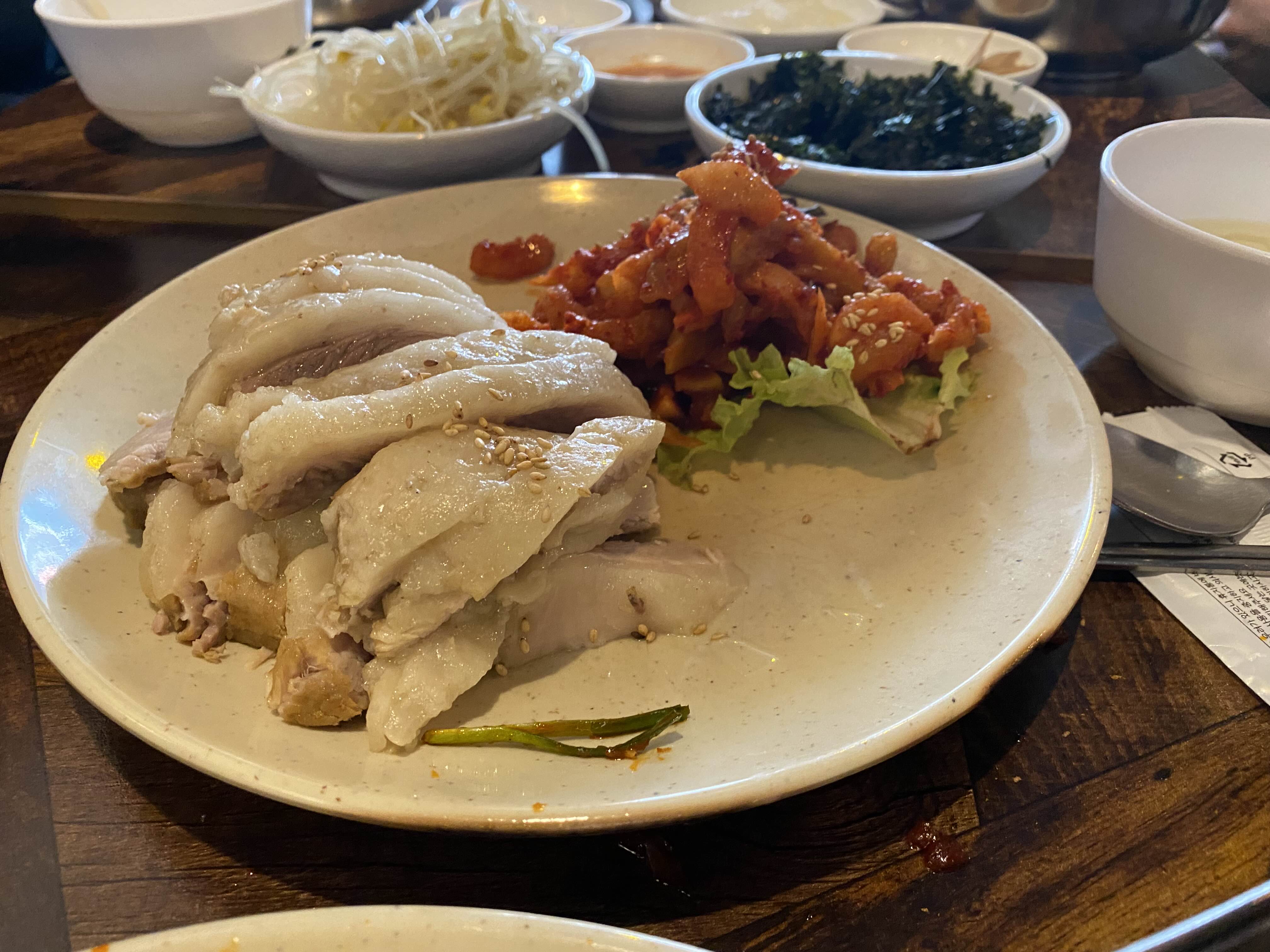 그사이에 보쌈이 나왔어요 보쌈은 일반 보쌈부위가 아니고 목살이나 앞다리 살은 아니고 항정살을 쓴다고 해요~~ 그래서 완전 부드럽습니다 그냥 구워 먹어도 맛있는다 +_+