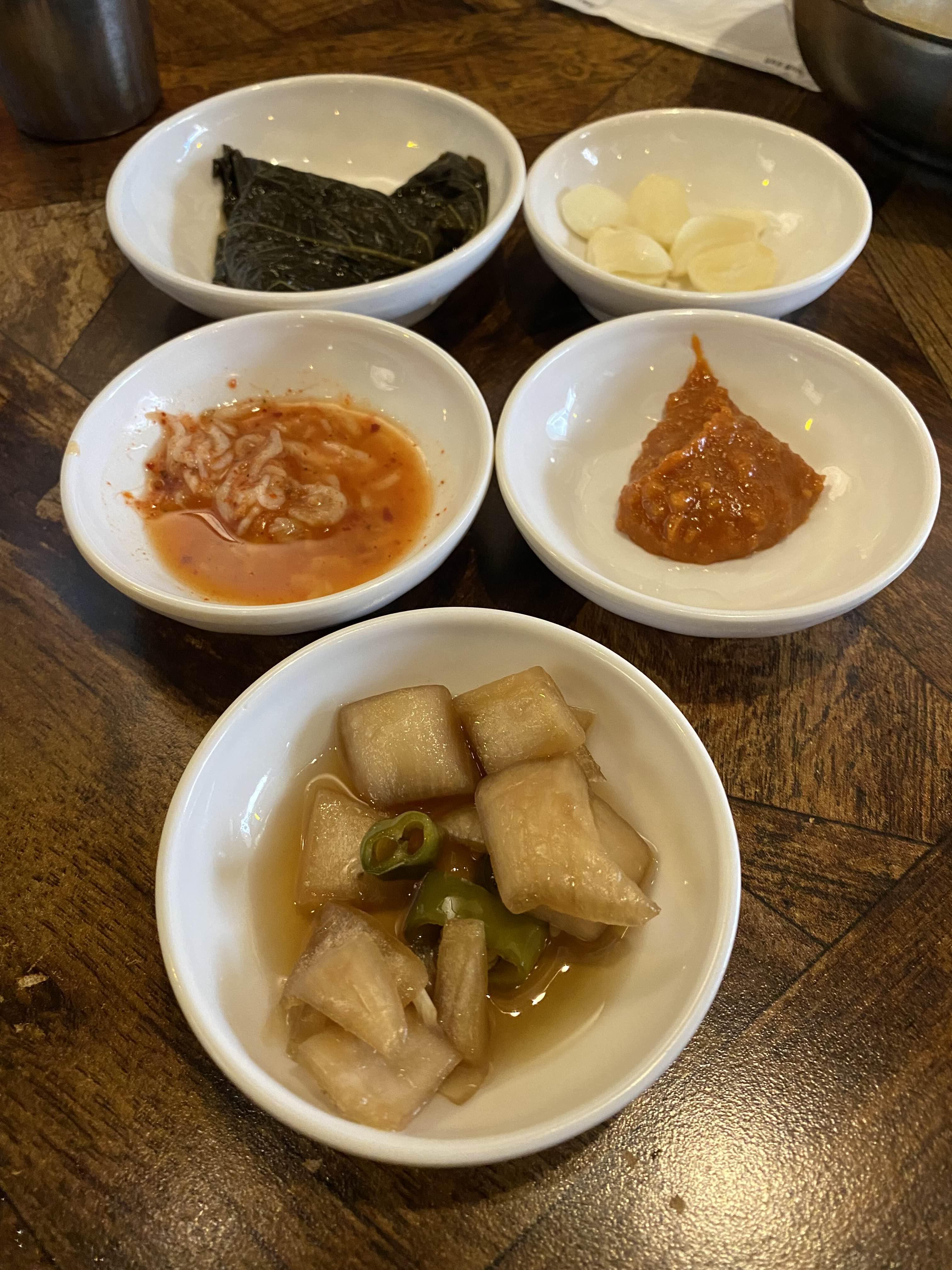 그사이에 보쌈이 나왔어요 보쌈은 일반 보쌈부위가 아니고 목살이나 앞다리 살은 아니고 항정살을 쓴다고 해요~~ 그래서 완전 부드럽습니다 그냥 구워 먹어도 맛있는다 +_+