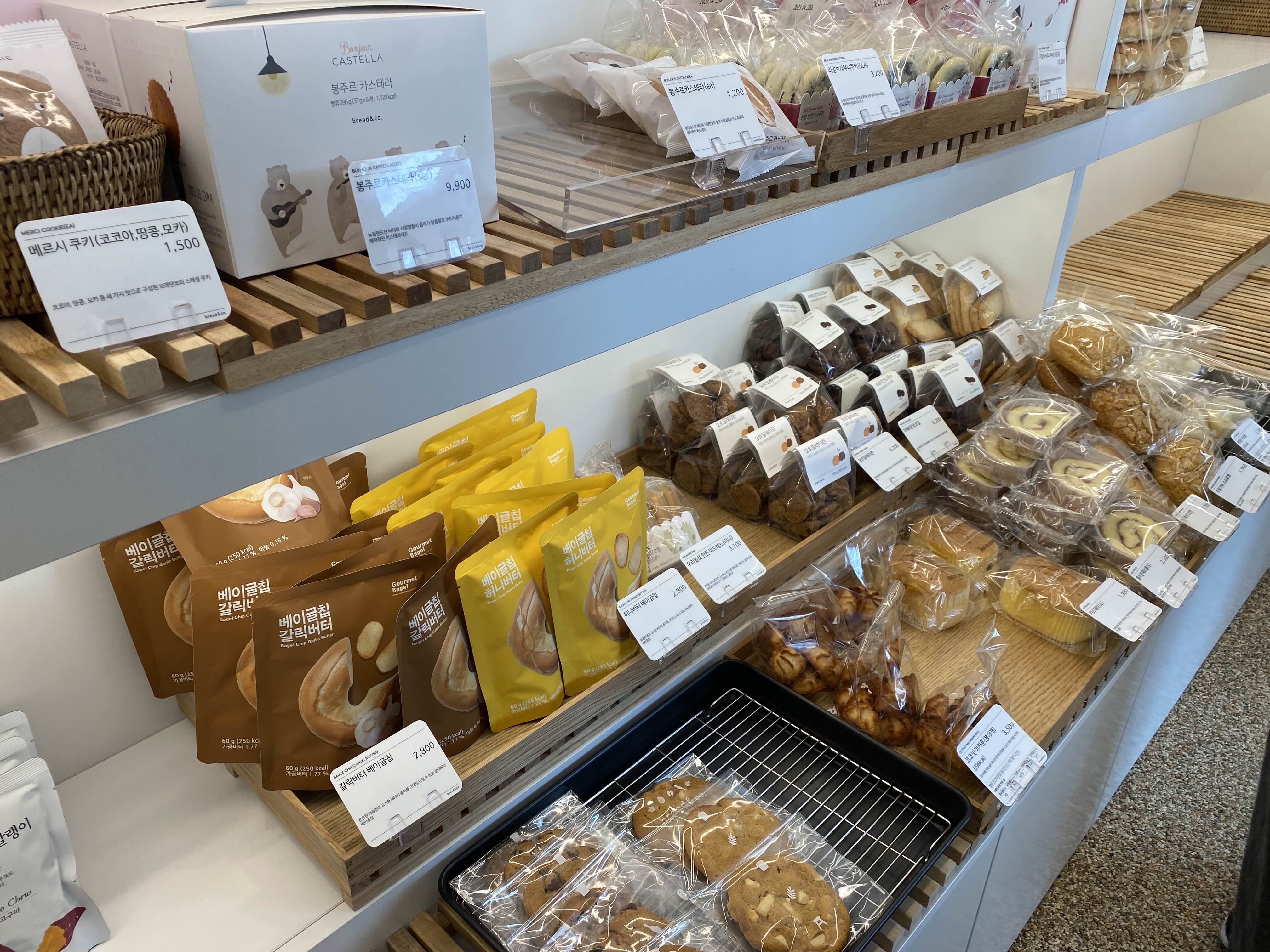 계산대 옆에는 병음료와 초코빵?