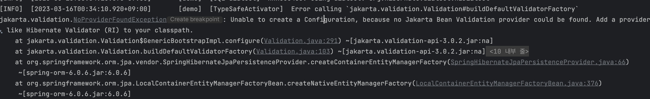 [TypeSafeActivator] Error calling `jakarta.validation.Validation#buildDefaultValidatorFactory`jakarta.validation.NoProviderFoundException: Unable to create a Configuration, because no Jakarta Bean Validation provider could be found. Add a provider like Hibernate Validator (RI) to your classpath.