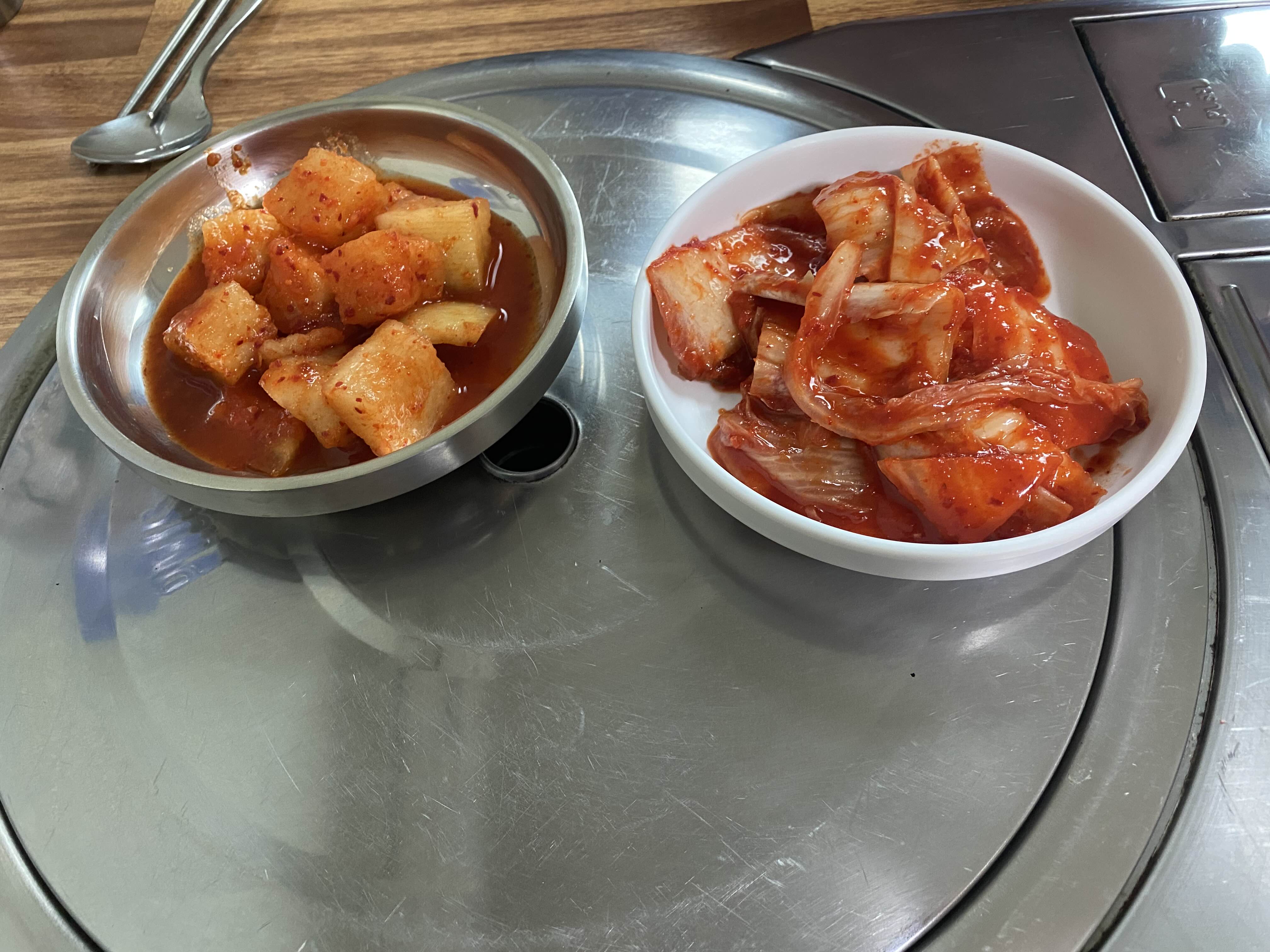 밑잔찬 김치 깍두기~~