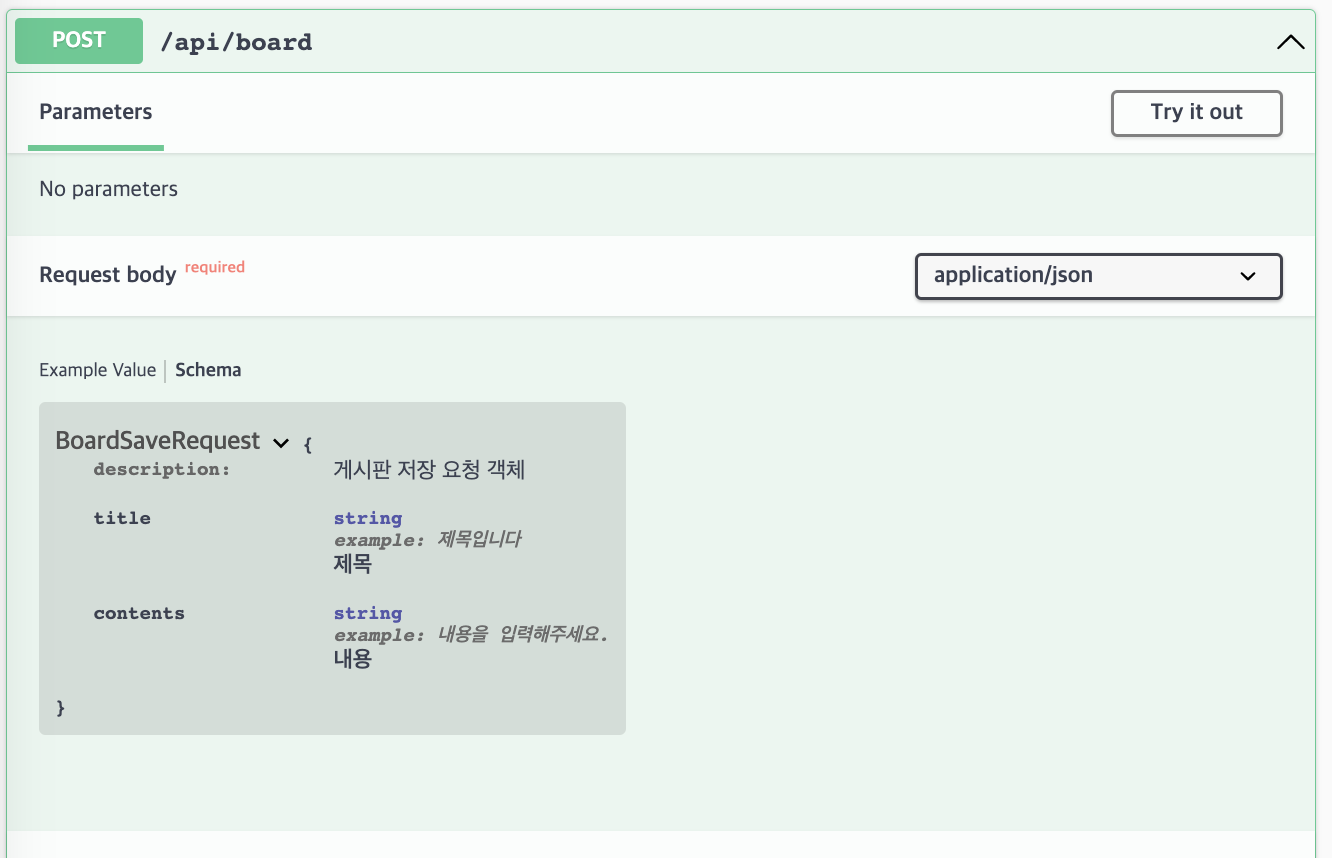 @Schema(description = "게시판 저장 요청 객체")